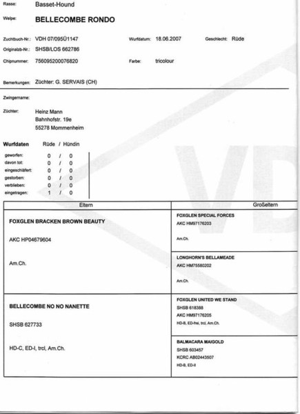 Bellecombe Rondo hat seine Residenz 2009 nach Welda zu meinem Bruder und seinen Hounds verlegt.